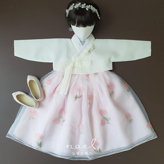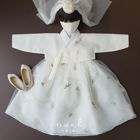 Ha-Eun Classic Hanbok in Ivory Floral - (100 Days to 8 Years)