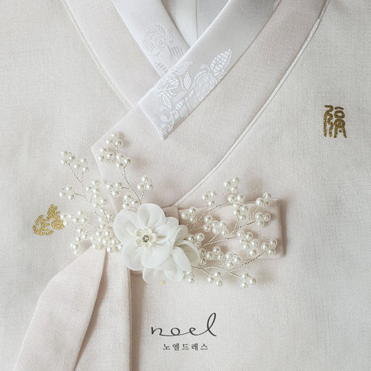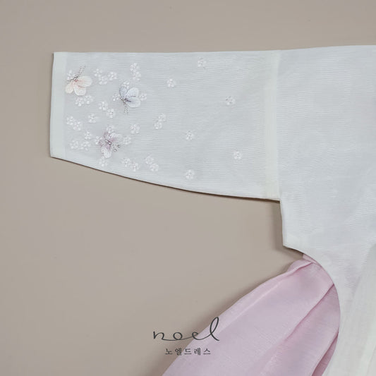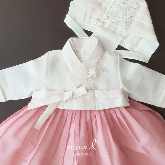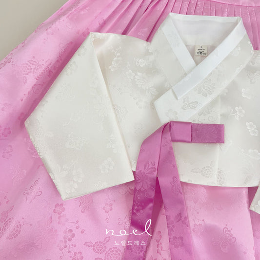 Ha-Eun Classic Hanbok in White/Pink Floral - (100 Days to 8 Years)