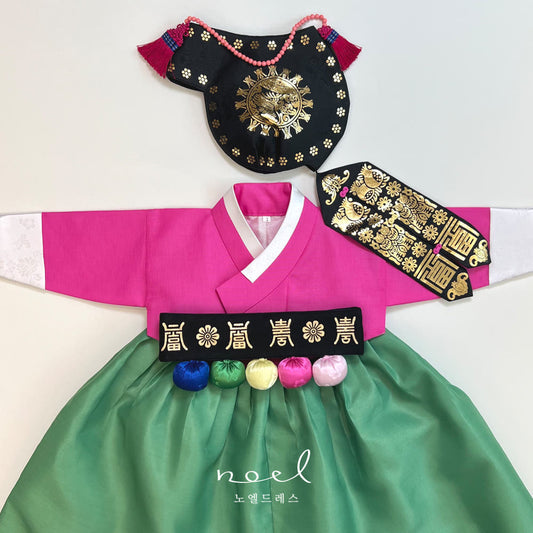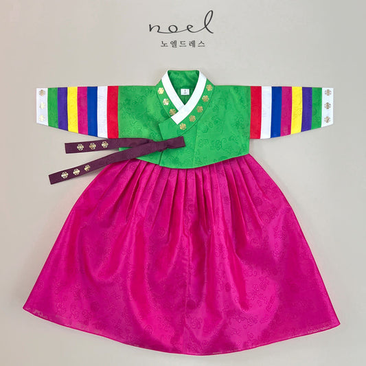 Ro-Mi Classic Hanbok in Hot Pink/Green - (100 Days to 10 Years)