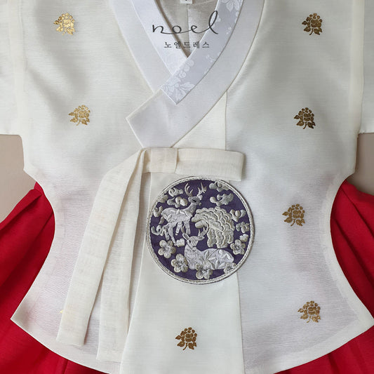 Suh-In Dangui Hanbok in White/Red - (100 Days to 13 Years)