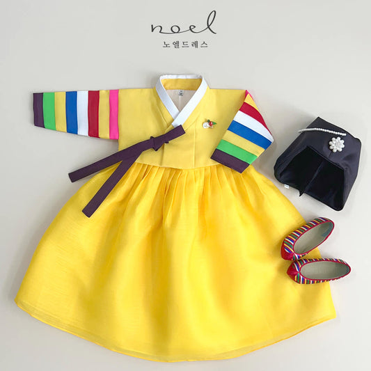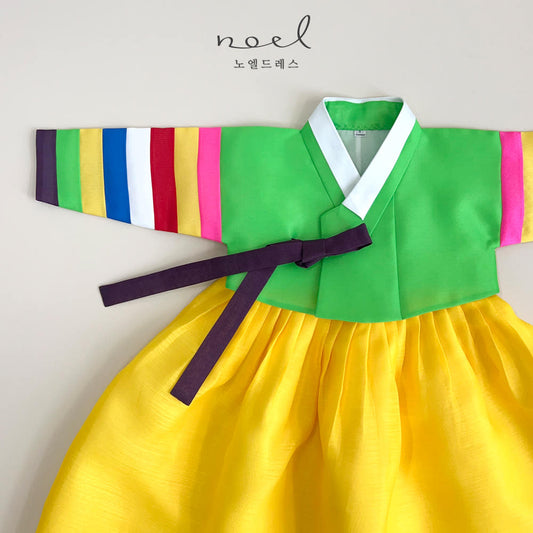 Jun-Kyung Classic Hanbok in Yellow Multi/Yellow, Green, Red - (100 Days to 1 Year)