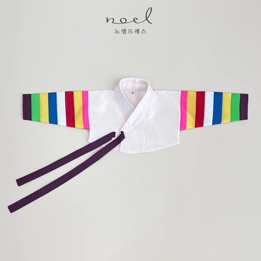 Jun-Kyung Classic Hanbok in White Multi/Red, Yellow, Green - (100 Days to 1 Year)