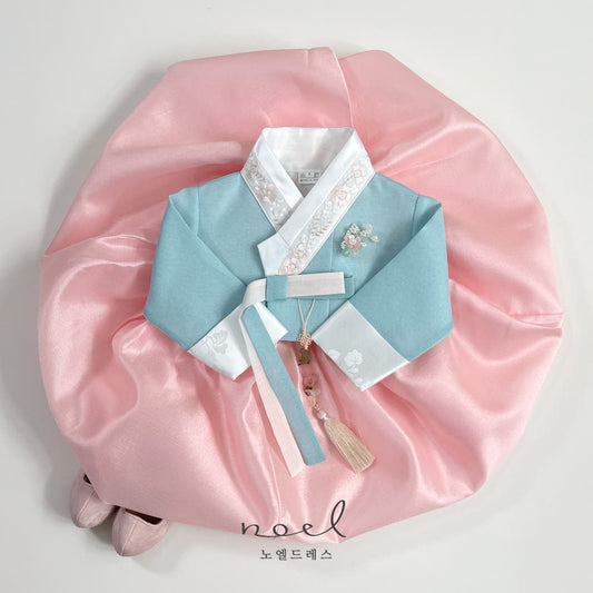 Kyung-Eun Classic Hanbok in Sky Blue/Pink - (100 Days to 10 Years)