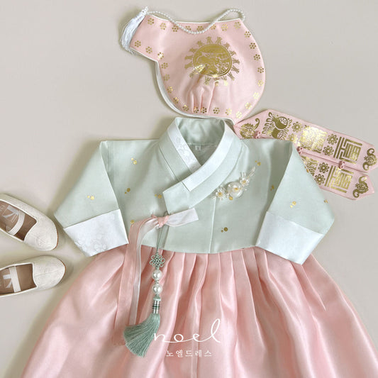 Mi-Ra Classic Hanbok in Light Green/Pink - (100 Days to 10 Years)