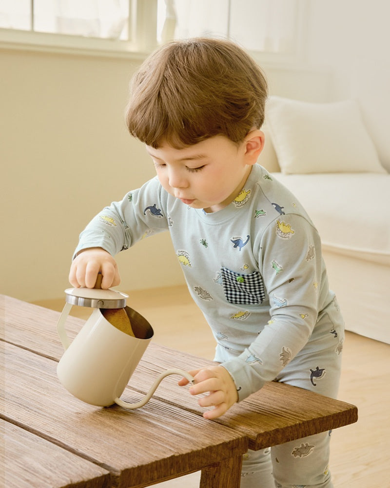 Made from soft 60s cotton with a touch of spandex, this pajama set offers stretchy and comfortable wear for active little ones. Featuring 9/10 sleeves and ankle-length pants, the slim fit design provides a snug, cozy feel without restricting movement. Ideal for sleep or indoor loungewear, available in sizes from toddlers to big kids.